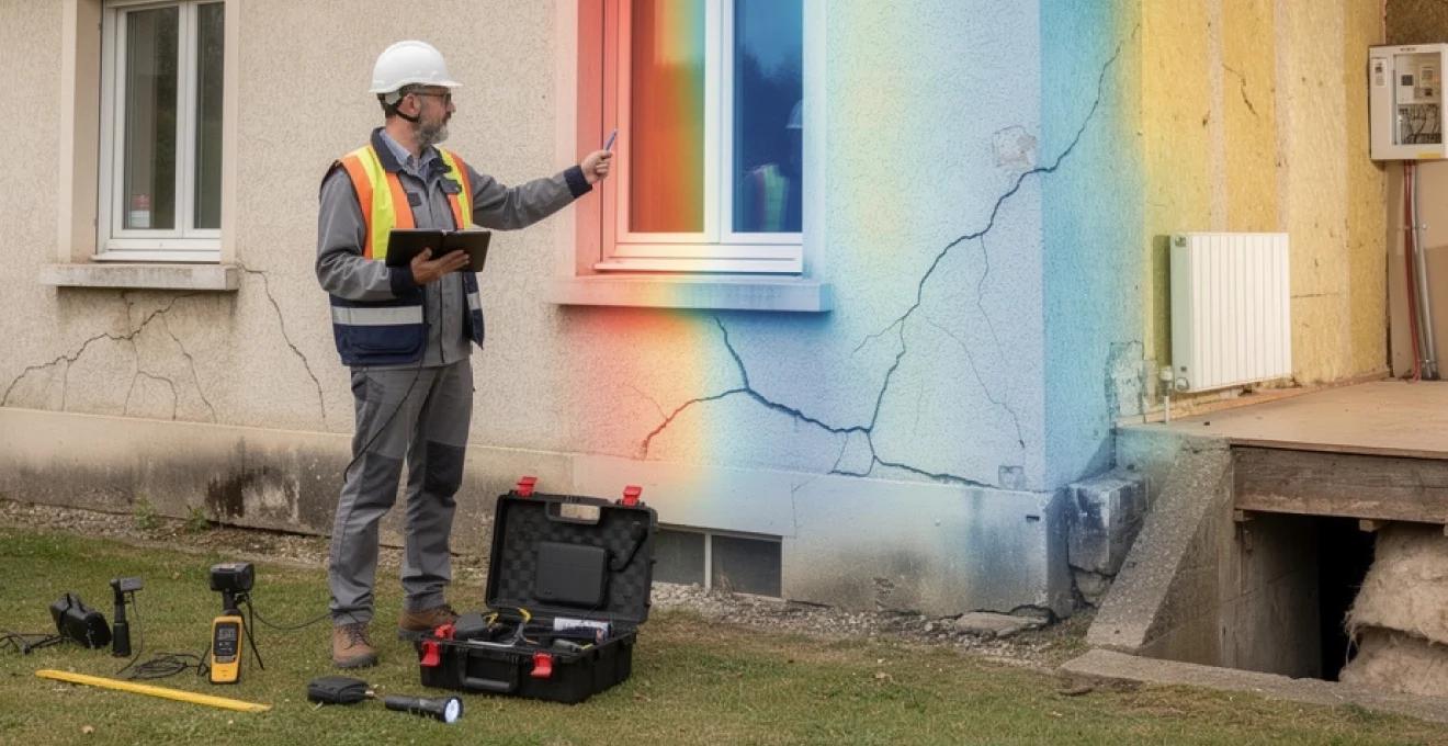Les ponts thermiques sont des zones où l’isolation est rompue, laissant la chaleur s’échapper plus facilement. Ils se situent souvent aux jonctions plancher-murs, autour des baies vitrées ou au niveau des balcons filants. Lors de son inspection, l’expert peut recourir à une caméra thermique pour visualiser les déperditions sous forme de zones plus froides sur les parois. Cet outil met en évidence des défauts invisibles à l’œil nu, comme une isolation manquante derrière un doublage ou une pose défectueuse de menuiserie.